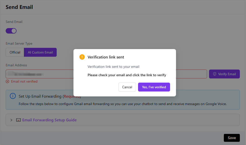 Test completed. You can now proceed to set up email forwarding. Please refer to the page documentation for details.
